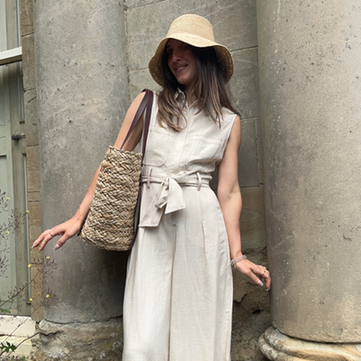 Linen Blend Jumpsuit with Stitch Details